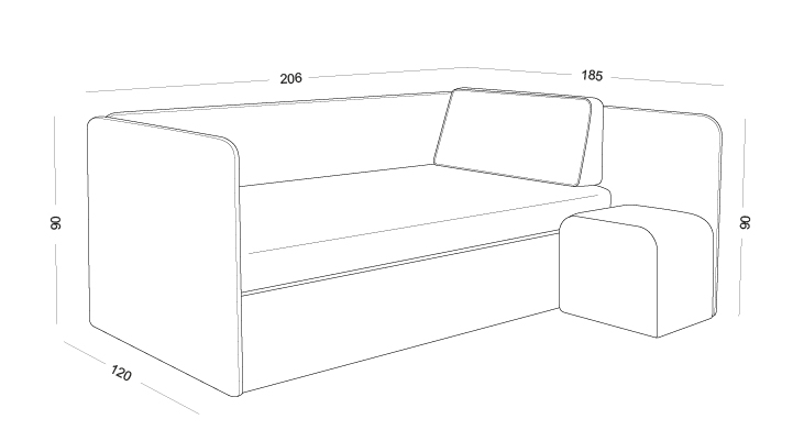 Koncept dopĺňajú pufy a stolíky inšpirované stavebnicovými tvarmi, ktoré podporujú bezpečnú hru a kreativitu. Celok uzatvárajú mäkké nástenné panely, vďaka ktorým sa izba mení na komplexný priestor pre spánok, hru aj rozvoj.