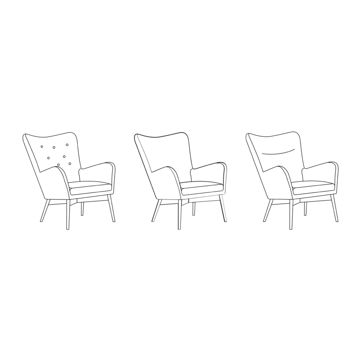 Dizajn stoličky si môžete vybrať z troch typov: BUTTON, MIRACH alebo CLEAN. Môžete si tiež vybrať typ podstavca podľa obrázka nižšie.