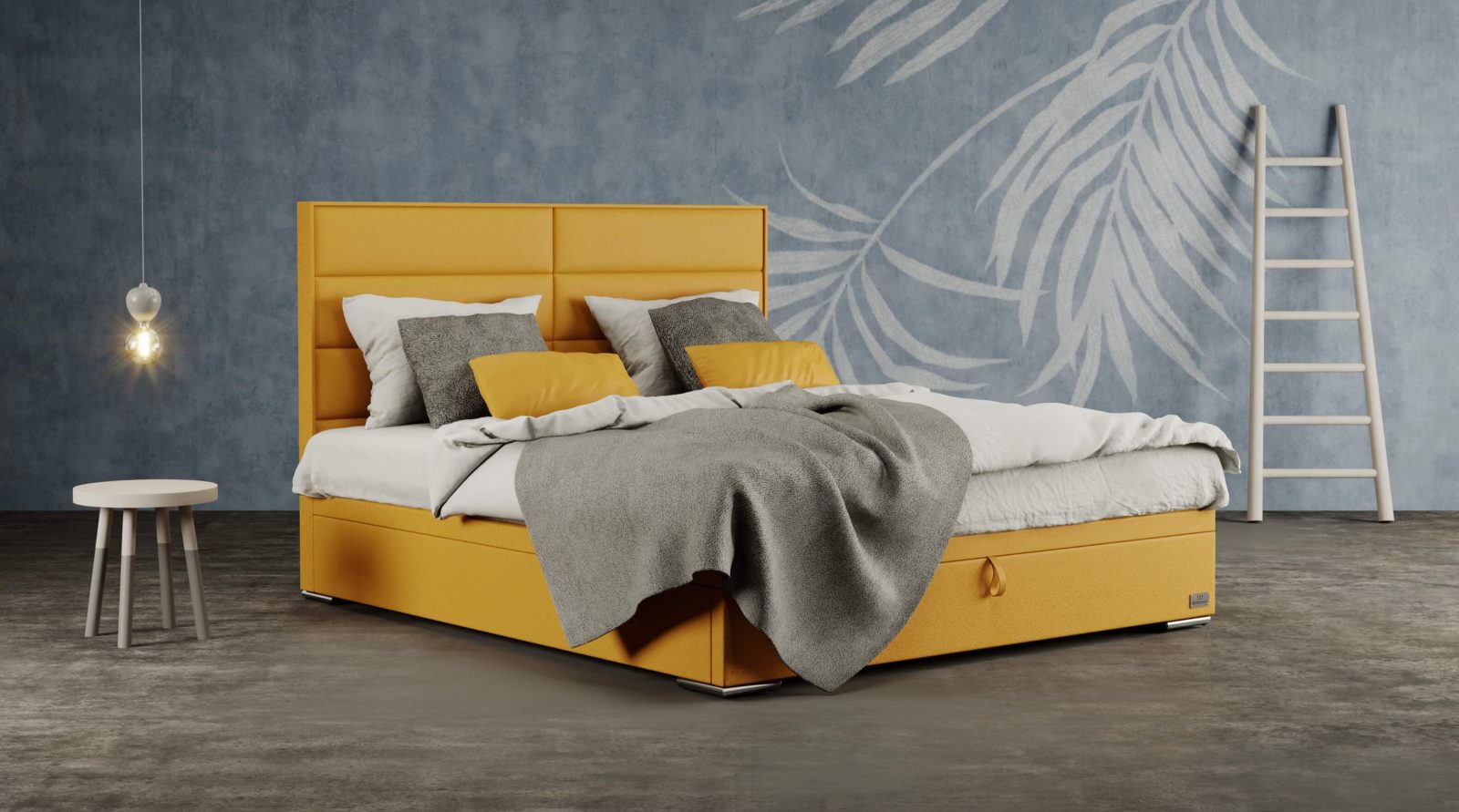 Kontinentálna posteľ Boxspring Maxi s výškou 32 cm, na podlahových nohách.