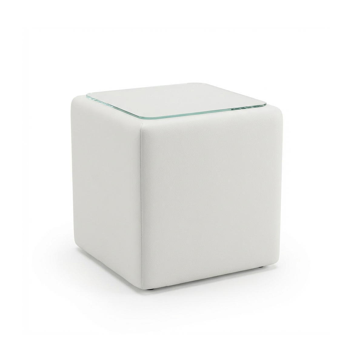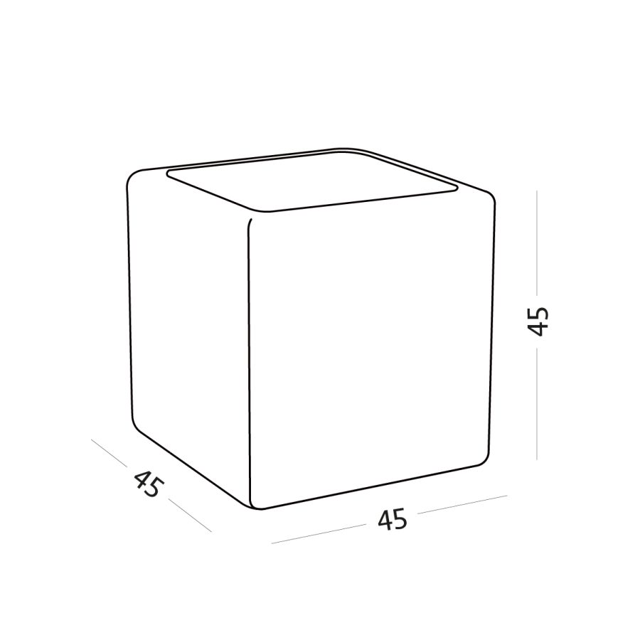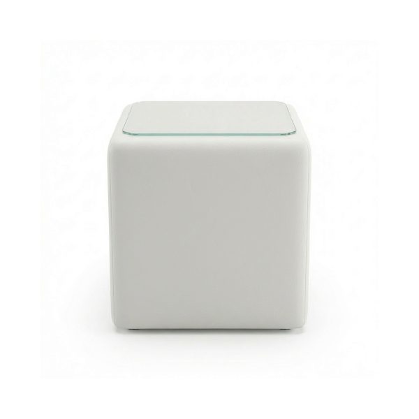 Celý korpus je precízne potiahnutý vysoko kvalitnou látkou, ktorá je príjemná na dotyk a nenáročná na údržbu. Vrchnú časť tvorí vsadená tabuľa z tvrdeného číreho skla. Tá poskytuje stabilný a rovný povrch na odloženie vody, knihy alebo dekorácií, pričom chráni čalúnenie pred znečistením. Geometrický tvar kocky so zaoblenými hranami zjemňuje celkový dojem a zvyšuje bezpečnosť v priestore.