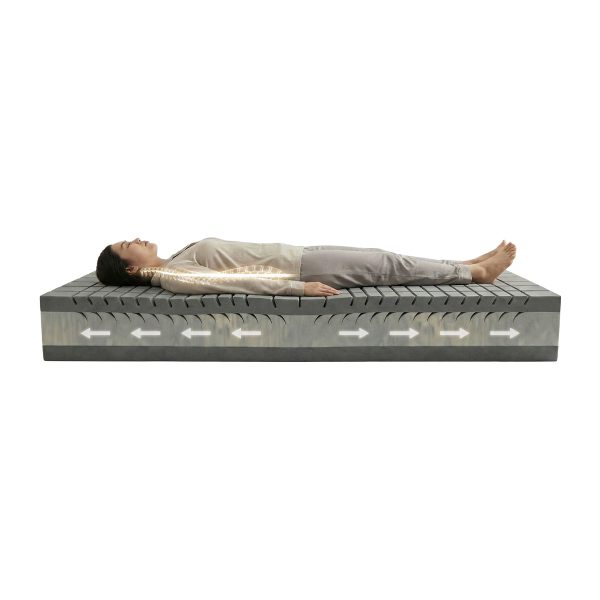 Unikátne profilovanie peny Nightfly podporuje jemné a prirodzené naťahovanie chrbtice, uvoľňuje medzistavcové priestory a napomáha redukcii nahromadeného napätia v chrbtovom svalstve. V kombinácii s jadrom Nanosilver poskytuje matrac pevnú, stabilnú oporu a zároveň sa inteligentne prispôsobuje individuálnym potrebám tela.