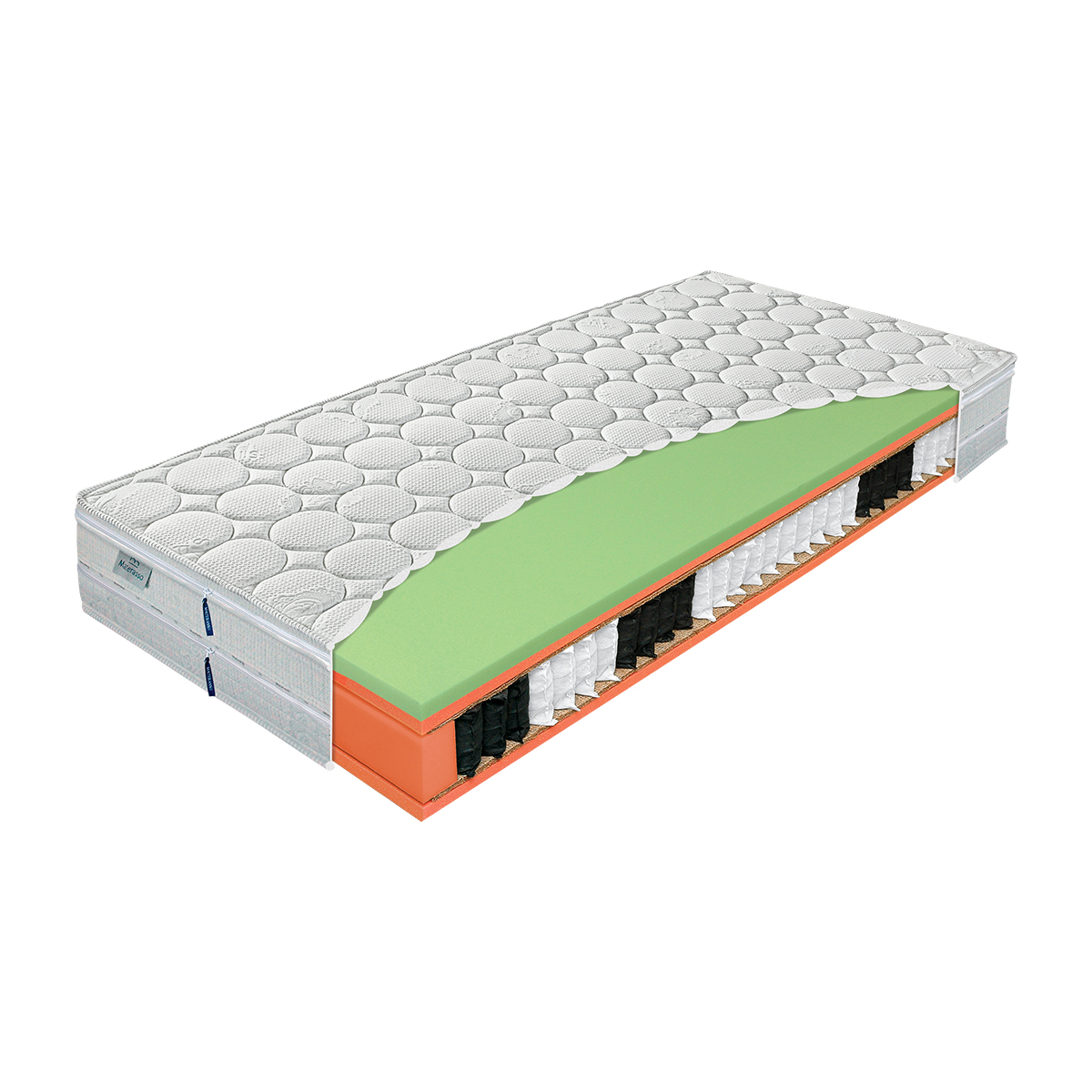 Vyberte si svoj materiál. Tento veľmi luxusný taštičkový matrac ponúka zaujímavú možnosť výberu povrchového materiálu – latex, cellflex, viscoelastická pena – viscogreen, polargel. Jadro matraca z taštičkových pružín a HR peny na oboch stranách je obalené odzipsovateľným poťahom, ku ktorému je zipsom pripojená druhá časť poťahu, skrývajúca povrchovú platňu. Tá je v základnej verzii z prevzdušneného zónovaného latexu. Je tu však možnosť zámeny materiálu za značkovú penu CELLFLEX, viscoelastickú – „lenivú“ penu VISCOGREEN, alebo veľmi vzdušnú a jemnú penu POLARGEL, a to bez zmeny ceny. Prirodzene antibakteriálny poťah SILVER, na hranách matraca lemovaný, pôsobí veľmi luxusne, je snímateľný a prateľný do 60°C.