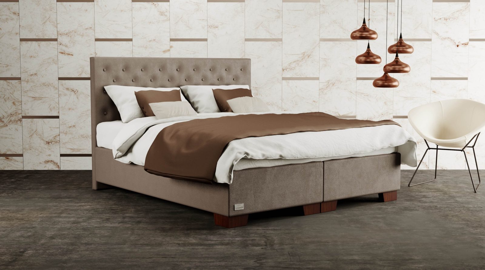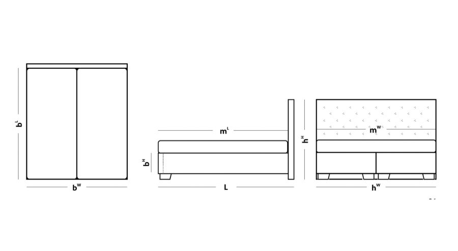 Čalúnená predná časť zdobená reliéfnymi gombíkmi je výrazom klasického pohodlia a elegancie. Jeho maximálnu funkčnosť a variabilitu zabezpečuje výber z niekoľkých systémov spania : od tradičného boxspringového lôžka s klasickým pružinovým systémom alebo inovatívnym boxspringovým výklopným systémom až po rámové lôžko bez úložného priestoru alebo s úložným priestorom.