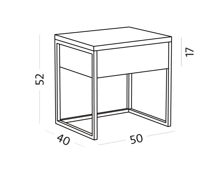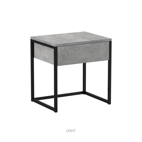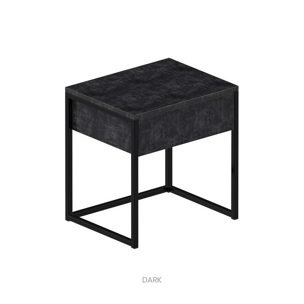 Táto verzia umožňuje jednoduché kombinovanie s rôznymi čalúnenými aj drevenými posteľami a je vhodná do moderných izieb. Kovová konštrukcia v spojení s dekorom betónu (Dark / Light) pôsobí industriálne, no zároveň nadčasovo. V rámci kolekcie vytvára harmonický celok a umožňuje flexibilné aranžovanie podľa potrieb priestoru.
